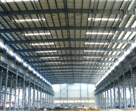 - Large-span space frame structure:For example, aircraft assembly workshops, hangar, dry coal sheds, church, stadiums, station roofs etc. Need to use large span structure, and their structure system are mainly space frame. Suspension cables, arch and frame etc. Large span space frame steel structure are currently widely used in the construction of major cities around the world.