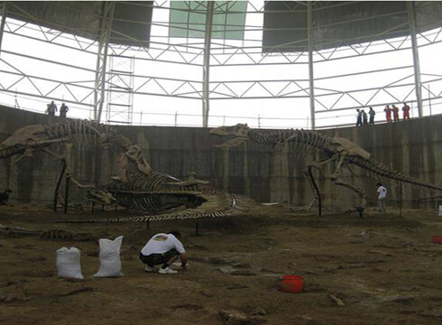 Dinosaur Museum Dome Space Frame is the first county (city) dinosaur museum in China. It exhibits the fossilized skeleton of the world’s tallest giant hadrosaur and more than 100 dinosaur fossils.