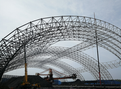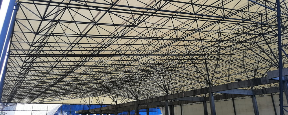 The space frame is made of square cones, the joints are connected by bolting balls, and the roof is made of film cloth.