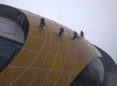 The total construction area of the theme park is about 21,000 square meters. It is a single-story large-span and large-space building with a height of about 30 meters, a length of 135 meters, and a width of 126 meters. The roof adopts a “fish-belly” bidirectional space triangular steel truss structure system, with a maximum main span of 67 meters.