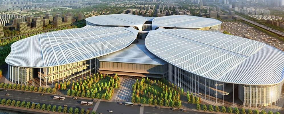 The total construction area of this project is 1,470,000M2, the building height is 43m. This project is divided into 17 units, include A0, A1, B0, B1, D1, E1, E2A, E2B, E2C, E2D, F1, F3, C0, C1, D0, F2, G area.Our company is responsible for the pipe truss project in Area C1. The exhibition hall is 270m wide and 338m long. The roof is a multi-span continuous triangular space pipe truss structure with an area of about 100,000 square meters.The walking tower crane is used to lift the blocks and connect them at high altitude.
