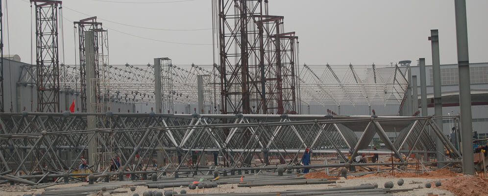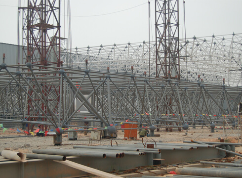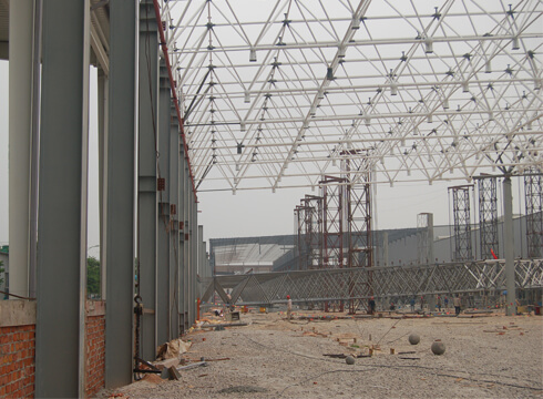 This space frame project adopted square quadrangle structure, and also its low chord had multi-point support.