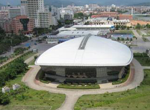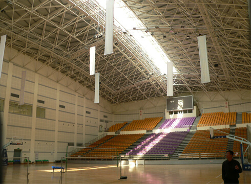 The stadium space frame project, which was one of the best-investment stadium in recent years. The space frame is 93 m in length and 66 m in width. It is oval shape structure and covered an area of 6000 square meter. It was 36 m in biggest span, 14 m in arch height, 11 m in eave height. The maximum elevation of the roof is 25 m and the maximum external projection is 6.75 m. The net frame is in the form of a quadrangle cone with a sagittal height of 1.7 m. The roof board is double BHP color steel plate, with 50 mm thick insulation glass wool in the middle, and a skylight with a length of 60 m and width of 5 m is set in the middle of the roof. The skylight is designed with an automatic smoke exhaust system, which can be opened automatically. The lower string has a 270 m maintenance track.