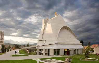 Due to archaeological discoveries beneath the site, construction of the Church of Our Lady of Tears took 28 years to complete. Eschewing ornate decoration, it reinterprets the towering form of centuries-old tradition through a modern lens.