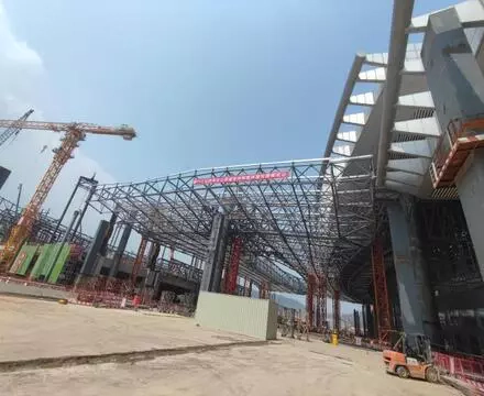 The project involves more than 32,000 tons of steel structure in total, with approximately 16,000 tons already installed, marking a significant milestone in its progress. The project team is committed to reinforcing performance management, advancing simultaneously in 5 lifting zones and 7 hoisting zones, and nearly 1,700 construction workers are working tirelessly to ensure that the steel structure goals are met as scheduled.